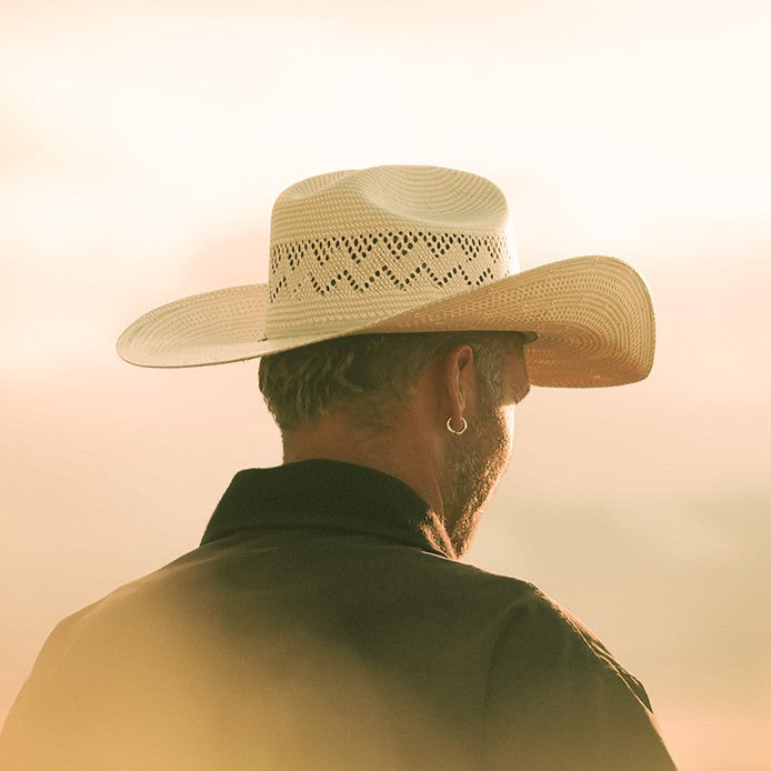 The Dakota is hand-crafted from Shantung Straw, firm structured finish to hold its western shape, featuring a black, braided hat band with Stetson tube detail and cattleman's crown.